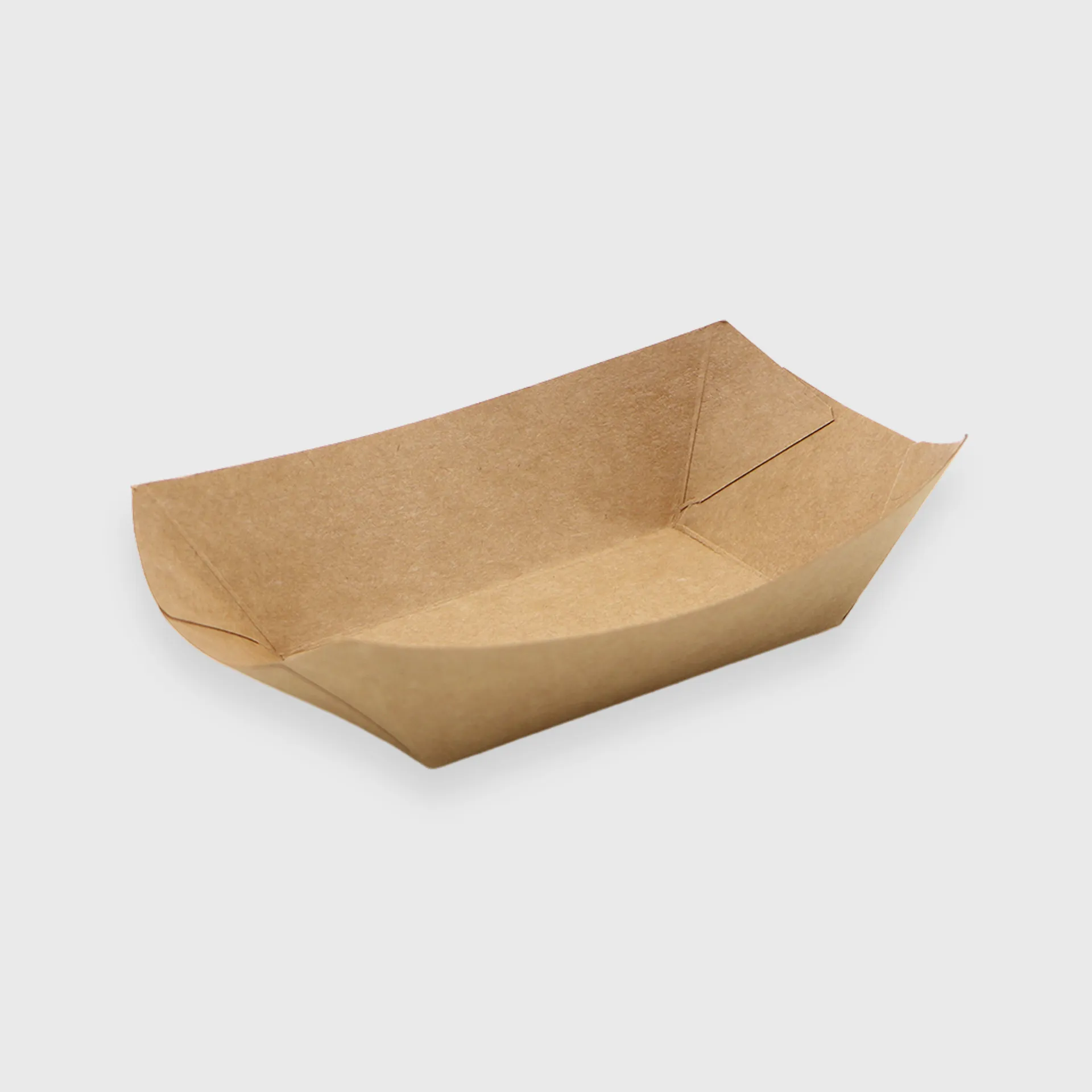 Η κατασκευή από kraft χαρτί εξασφαλίζει ανθεκτικότητα και οικολογική συνείδηση, ενώ παράλληλα προσδίδει μία φυσική και κομψή εμφάνιση. Το χάρτινο σκαφάκι είναι ιδανικό για όσους αναζητούν μια αξιόπιστη και φιλική προς το περιβάλλον λύση για τη συσκευασία των τροφίμων τους.